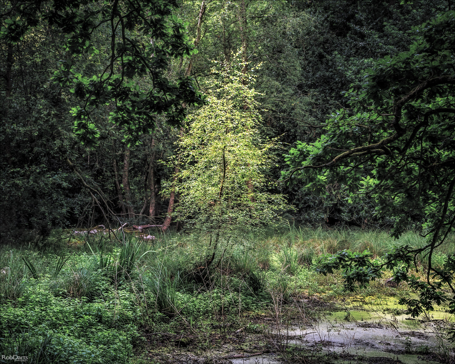 So armed with my trusty Canon I took myself off to the village of Thompson in the area of Thompson Water and walked through an area known as Thompson Carr. I was immediately struck by the tranquil atmosphere; the tree canopy foliage was so thick not only did it affect the amount of available light but it made the air so still instilling a sense of “foreboding and mystery”.