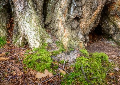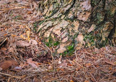 At the base of a towering tree, where roots emerge like ancient fingers from the woodland floor, lies a space both humble and sacred. This is the tree’s threshold, the point where wood and earth embrace—a meeting place of strength and nourishment, where time itself seems to settle.